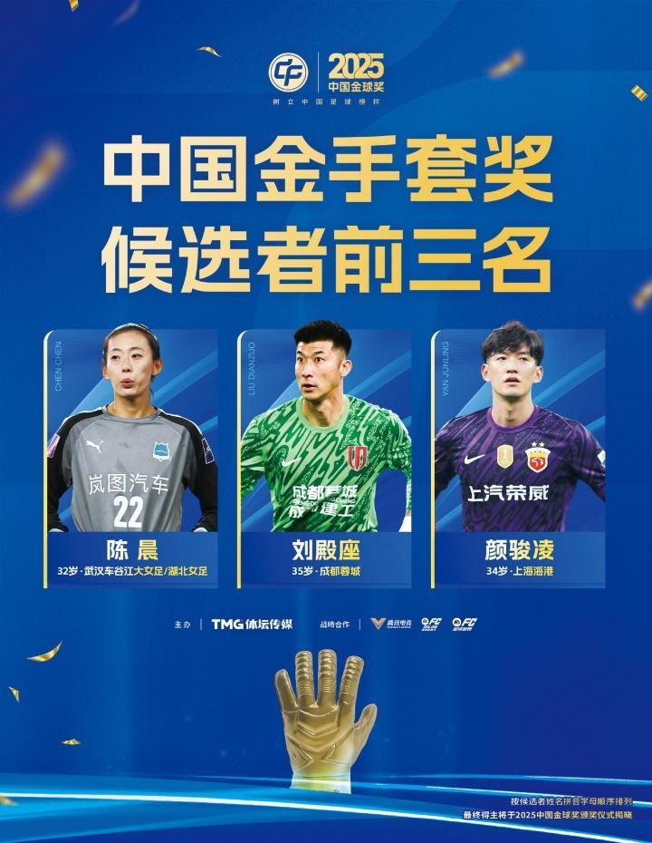中国金手套奖评选继续记录各位本土门将的一夫当关:在亚冠淘汰赛和全运会多次统治点球大战的武汉车谷江大门将陈晨、在成都蓉城找回巅峰状态的刘殿座,以及力助上海海港再夺中超冠军的颜骏凌同时入围此次评选的前三名。值得一提的是,在U23亚洲杯奉上优异表现的小将李昊同样入围了2025中国金手套奖的候选名单,最终排名第5位。